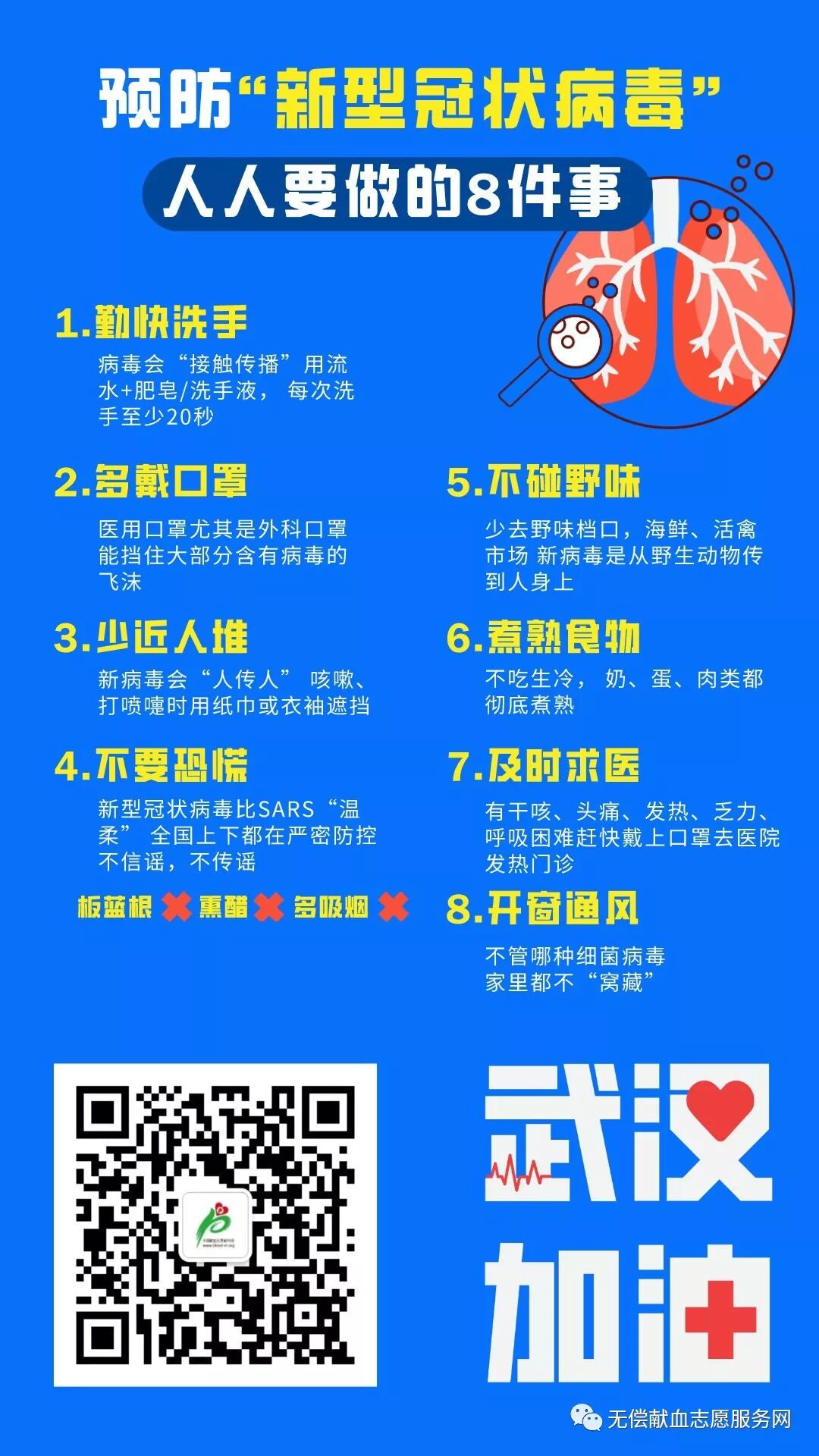 疫情当前,志愿服务要怎么做才能护己利人?發表時間:2020-03-03 23:18 2020年的春节,是非同寻常的。 新型冠状病毒在全国范围内蔓延,在这个“非常时期”,你还敢出门做志愿服务吗? 面对这个问题,大部分人的态度是:应该理性分析、理性回答。 本期文章,就为大家理性地说一说,新型冠状病毒和志愿服务之间的那些事儿! 新型冠状病毒到底是什么? 通俗地讲:这是一种传染病的病毒。 新型冠状病毒的和2003年令人闻风丧胆的SARS一样,都是由吃野味引发的,并且都会对人体的呼吸系统产生威胁! 但它比SARS温和得多,不会让人在三五天内就发展到病情极其严重的地步,甚至某些感染者在感染后的十余天都是不发病的。这也就意味着身边任何一个看起来非常健康的人,都可能是潜在感染者。而最厉害的是,这种病毒在潜伏期(未发病时),也具有传染性!! 新型冠状病毒,和无偿献血志愿服务工作有什么关系? 一句话概括:两者之间关系密切! 志愿服务工作需要走上街头、与人们产生沟通。而“疫情”的出现让这种沟通变得困难。 首先,上街的人少了。 无论是献血者还是志愿者,“大敌当前”都会选择在家里躲一躲,上街的人少了,到街头献血的人也跟着少了,彼此间接触的机会更是少之又少。 第二,不敢轻易与对方产生密切接触。 上文说到,任何一个看起来非常健康的人都可能是病毒的潜在感染者、传播者。所以无论是献血者还是者愿者,他们彼此心里都会多一层“顾虑”,尤其是献血者,他们深知自己健康才会去献血,但并不清楚服务人员的身体健康情况,所以会更加紧张一些。 第三,志愿者不敢参与志愿服务。 参加志愿服务的过程中,会涉及到乘坐公共交通工具、到人群密集的商场等行为。这些与国家所提倡的“老老实实呆在家里”是相矛盾的,或者说是有风险的。这也让许多爱心人士打起了退堂鼓。 为何会有志愿者、献血者选择“明知山有虎,偏向虎山行”? 因为对他们而言,防疫需要他们的参与。 日前,国家卫健委印发的《新型冠状病毒感染的肺炎诊疗方案》(试行第四版)中有这样一段说明:感染病毒后,严重的患者会出现出凝血功能障碍。 另外,在治疗上也指出,必要情况下可以使用“体外肺”进行支持治疗;而启动“体外肺”需要与输血相配合。 这也就意味着,献血者和志愿服务者都不得不要面对一个问题——无论我们是否献血、是否去做志愿服务,在疫情面前,医院对血液的需求与日俱增! 作为一名志愿者,该怎么做? 仗,得打,但是不能硬拼。 首先,理念要到位。 一是防住,带好口罩、手套,穿长袖衣服,这样可以起到抵御外敌的作用。二是杀死,新型冠状病毒怕75度以上的酒精(医用酒精),坚持用酒精消毒可以把环境中的敌人杀死。 第二,设施要完备。 棉布口罩保暖,但并不能抵抗病毒,真正能够抵御病毒的是医用口罩。无论是献血者、还是志愿者,在决定走上街头前一定要带好合规口罩,这是对自己的保护、同时解除他人心头的“顾虑”、对他人的健康负责。如果条件允许,还可以在服务结束后用医用酒精擦擦手,给自己消个毒。这些都是对服务者、献血者最好的保护。 第三,态度要端正。 在此“非常时期”街头志愿者们难免会遇到一些令人不悦的眼光和言语。还有因为不了解无偿献血、不理解新型冠状病毒传播途径的献血者们的担心和发问。面对这些,志愿者一定要摆正心态,耐心解答。要知道,疫情当前,那些愿意走出家门来到献血屋献血的人,一定已经克服了相当大的阻力、做了充分的思想斗争才愿意来到这里。他们心中的顾虑,需要得到志愿者耐心、认真、细致地解答,这是舒缓献血者情绪至关重要的一步! 第四,知识要扎实。 面对突如其来的疑问,志愿者是否能掌握充分的知识显得尤为重要!哪位献血者掌握的知识更加丰富、精确、科学,他对献血者来说就更值得信赖。“不造谣、不信谣、不传谣”。 第五,情绪要平和。 心急吃不来热豆腐,现在去做志愿者,每天能服务的人一定没有过去多,甚至还会比过去辛苦。可即便如此也不要忘了最重要的一件事——无偿献血是一件自愿的、利他的公益行为,不要因为我们着急,就极力“安利”他人来献血,这样反倒会起反作用力、事与愿违! 最后 送给大家一组“疫情谣言”图 见到以下谣言 请以发射火箭的速度逃离 小心误伤 【相关阅读】 上一篇血液安全从我做起