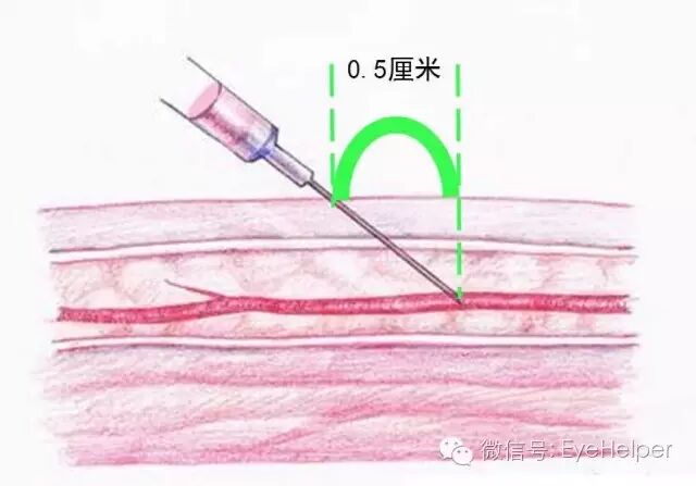 ▼图1 皮肤针眼和血管针眼的相对位置示意图